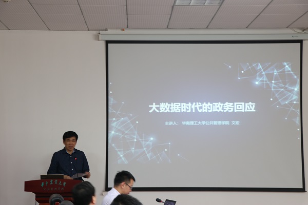 5月6日,华南理工大学文宏教授做客公司公共管理论坛,在人文社科楼M101报告厅带来主题为大数据时代的政务回应的报告,并与在座师生进行交流学习。报告会由英国威廉希尔WilliamHill经理张安录主持。