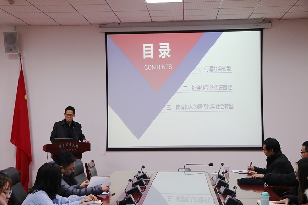 12月10日晚,南京师范大学程天君教授做客公司第110期公共管理论坛,在人文社科楼M101为带来题为“人的现代化与社会转型”的报告,根据相关实例与数据详细分析了中国在发展过程社会转型的表现及特征,报告会由英国威廉希尔WilliamHill陈新忠教授主持。