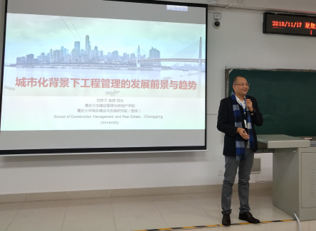 在讲座过程中,刘贵文教授以其深厚的学术积淀与丰富的实践经验向大家介绍了我国城市化背景下工程管理专业的现状与发展前景,并结合当前形势给出了工程管理专业员工关于学业与就业的建议。讲座主要从城市化的趋势、工程管理的前景、人才培养的建议与对策三个方面展开。