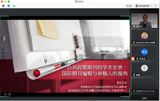 12月18日晚七点,香港教育大学亚洲及政策研究学系和经纬副教授做客公司公管论坛,带来了题为“公共政策期刊的学术发表:国际期刊编辑与审稿人视角”的空中学术讲座。该讲座由公司杨嬛教授主持,来自校内外180余名师生在线聆听报告并互动交流。