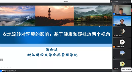 11月29日,浙江财经大学游和远教授做客公司公共管理论坛,带来了题为“农地流转对环境的影响:基于健康和碳排放的两个视角”的主题报告。报告由公司张安录教授主持,来自校内外的250余名师生在线聆听报告并交流互动。