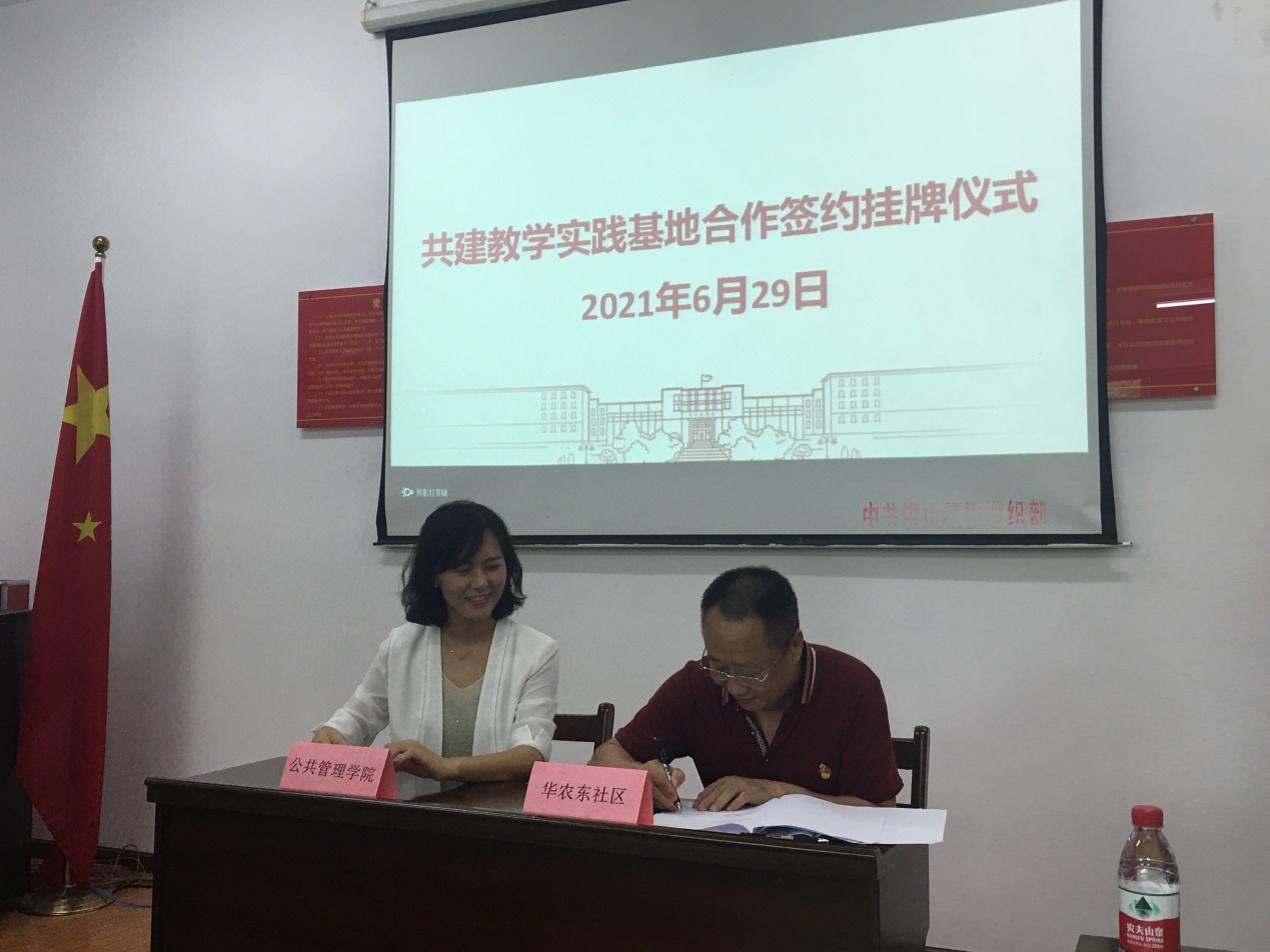 2021年6月29日,公司与狮子山街道华农东社区在东社区二楼会议室举行“共建教学实践基地”合作签约仪式。副经理丁艳华、行政管理专业党支部书记王家合、行政管理系主任姜庆志、行政管理专业教师代表李元珍、黄宸和宋钰,以及狮子山街道人大工委主任甘顺利、华农东社区党支部书记陈华伟、居委会主任王根平、专职副书记刘雅梦、社区副主任王寅出席了签约仪式。