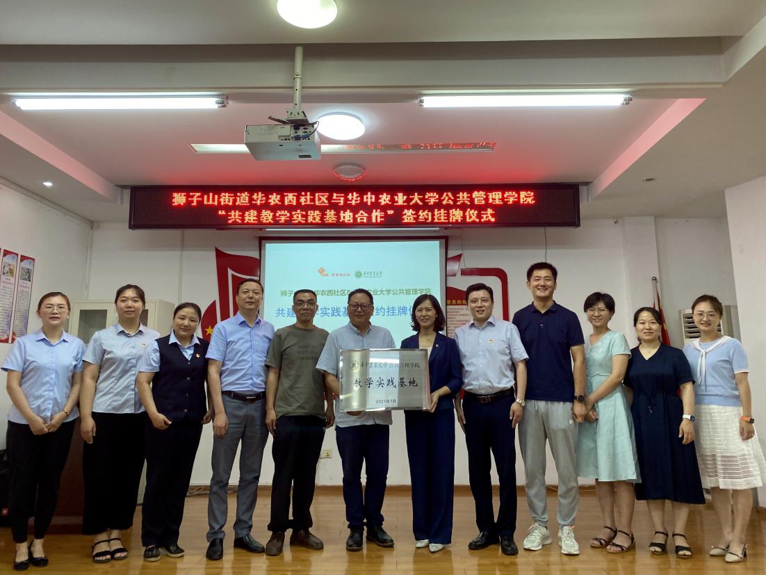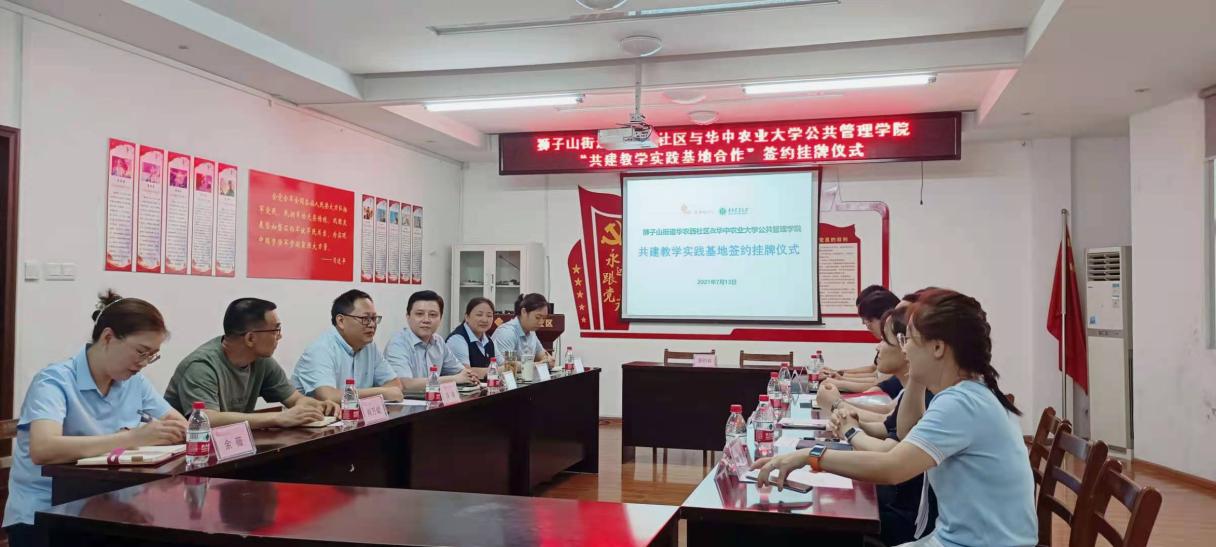 7月13日上午,公司与狮子山街道华农西社区于西社区二楼会议室顺利举行“共建教学实践基地”签约挂牌仪式。英国威廉希尔WilliamHill副经理丁艳华、行政管理专业党支部书记王家合、行政管理系主任姜庆志、行政管理专业教师代表张莉萍、杨嬛、黄宸以及狮子山街道党工委副书记刘涛、华农西社区党总支书记张羽、华农西社区居委会主任肖万斌、副书记徐艳、副主任余薇、汤晓希出席启动仪式。