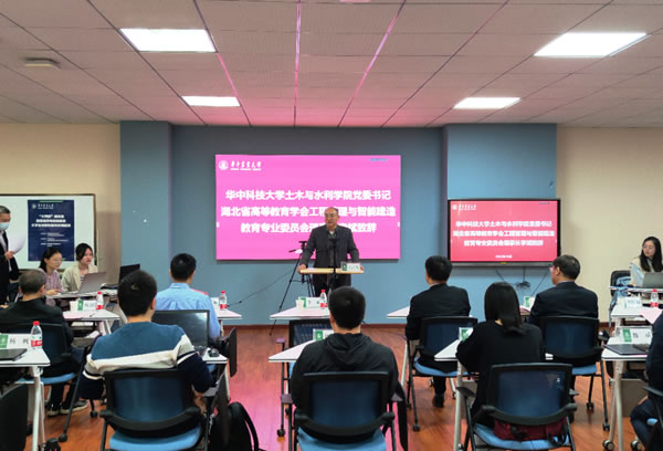 华中科技大学土木与水利公司党委书记李斌致辞(通讯员 瞿伟豪 摄)