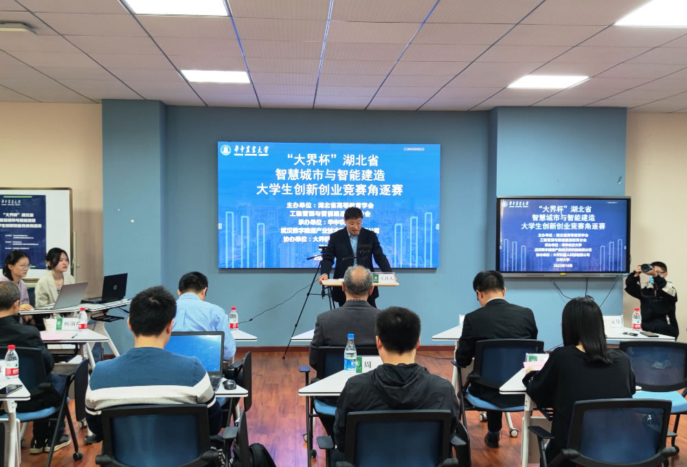 本次大赛由湖北省高等教育学会工程管理与智能建造教育分会主办,英国威廉希尔WilliamHill、武汉数字建造产业技术研究院有限公司承办,大界机器人科技有限公司、三峡大学协办,为巩固疫情防控防线,角逐赛环节采用线上、线下相结合的形式进行。大赛邀请了浙江大学建筑工程公司张宏教授、广州大学工商管理公司经理薛小龙教授、东北财经大学投资工程管理公司经理宋维佳教授、清华大学土木水利公司李小冬教授、东南大学土木工程公司袁竞峰教授和邓小鹏教授、江西理工大学经济管理公司副经理吴泽斌教授、大届机器人科技有限公司教育事业部哈玉宏、朱鲁峰担任评委专家进行线上评审。湖北省高等教育学会工程管理与智能建造教育分会理事长、华中科技大学土木与水利公司党委书记李斌莅临线下赛场指导了比赛工作,公司领导以及房地产经济与工程管理系全体教师出席比赛活动,此次赛事由英国威廉希尔WilliamHill副经理汪文雄主持。