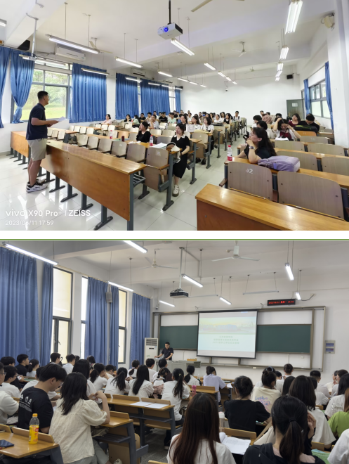 “王清欣同学,你的选题体现了理论与实践相结合,但还应该理顺文章逻辑及研究框架的设计,增强规范性,并且需要将统计性的结果加入文中,增加论文可信度。” “席中昊同学,你的选题切合实际发展,还应将专有名词细化。”6月7日下午,8位毕业生代表在人文楼M115报告厅依次进行公开示范答辩,共有来自大三的近百位员工和各系教师前来观摩学习。副经理汪文雄逐一介绍了答辩组评委和参加答辩的员工,并表示这是一场师生之间学术交流的盛会。近5个小时的答辩现场气氛严肃而庄重,师生聚焦论文选题、逻辑结构、研究方法、理论基础、调研数据、行文表述、结论分析方面等深入讨论交流,评委们分析了每位员工的论文特点,提出了宝贵的修改建议和意见,确保了答辩过程不走过场。