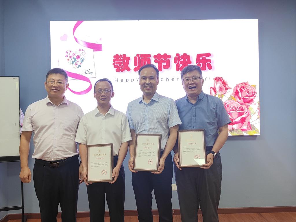9日下午以“致敬师恩,共筑教育梦”为主题的庆祝教师节座谈会在人文楼M221会议室举行。公司向全体教师对公司发展及员工成长的奉献表示衷心地感谢,向从教满30年的蒋勇、杨兴权、张军三位老师颁发了荣誉证书。蒋勇老师深情回顾了自己30年的教员工涯,感慨道:“这三十年来,我在同事们的支持与帮助下,虽取得了一些成绩,但更重要的是,我始终保持着对教育的热爱与探索,不断尝试创新,开设新课,力求为员工带来更加丰富多元的学习体验。”张军老师分享了自己作为班主任的宝贵经验,他讲述了一个将普通班级转变为优秀集体的感人故事,强调了师生间相互理解、共同努力的重要性。张老师的话语中充满了对员工们的感激之情,他认为正是与员工们共同成长的过程,让他的教育生涯更加充实而有意义。杨兴权老师也分享了他与员工相互成就的过程,在实践中助力员工成长成才。在心声互动环节,在座教师纷纷向三位老师提问,就教学方法、班级管理、师生关系等话题展开了热烈而深入的交流。这一环节不仅增进了教师之间的沟通与理解,也为年轻教师提供了宝贵的学习机会。