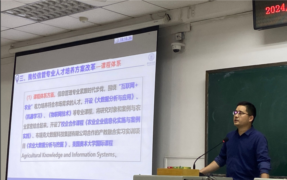信息管理系主任李优柱老师以“智驭信息社会,领航数字时代”为主题,从专业概述、建设特色、人才培养方案改革、人才培养成效及就业前景等方面对信息管理与信息系统专业进行了全面阐述。他强调,随着时代的发展,大数据、人工智能利用已成为管理科学与工程领域的重要研究课题。李老师详细介绍了在数值赋能的社会大环境下,公司在培养懂管理、会技术的复合型人才方面的若干改革举措,列举了信管专业同学们在全国数学建模、程序设计大赛、英语竞赛等方面的优异成绩,以及毕业生就业率高、就业质量好的专业发展良好态势。他鼓励同学们以优秀员工为榜样,努力学习,热爱自己的专业。