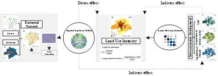 We explored the spatial spillover effect through ecological networks on intensive urban land use and the underlying driving mechanism using the Wuhan urban agglomeration as the case study area.