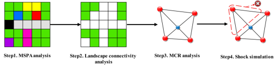 英文摘要:With rapid urbanization and frequent disasters, regional ecosystem resilience decreased continuously. Strengthening the resilience of the ecological network is conducive to improving the ecological benefits and the quality of ecological products. The research on the resilience of ecological networks is increasingly concerned, and it is necessary to construct a comprehensive research framework to evaluate the resilience of ecological networks. Taking Wuhan metropolitan area as a case, this research aimed to constructs an ecological network and evaluates network resilience from the perspective of complex networks. Firstly, we construct the evaluation Index of network resilience from the structure and function dimensions. Secondly, regions with high importance are selected as ecological sources according to the evaluation of landscape connectivity. Thirdly, the MCR model is used to establish the ecological network. Finally, we analyzed the resilience characteristics of the network under different node failure scenarios. The results show that: (1) Ecological nodes correspond to a wide variety of land types, including forest, water bodies, croplands, and urban and build-up; (2) The overall ecological connection of the ecological corridor is relatively high and the main components of the landscape are croplands, forest and water bodies; (3) The trend of structural and functional resilience does not always show convergence under different shock simulation which is related to the redundancy of networks. The research results will help to analyze the network and regional resilience and provide references for the optimization of ecological networks and the improvement of sustainable ecosystem management and restoration.