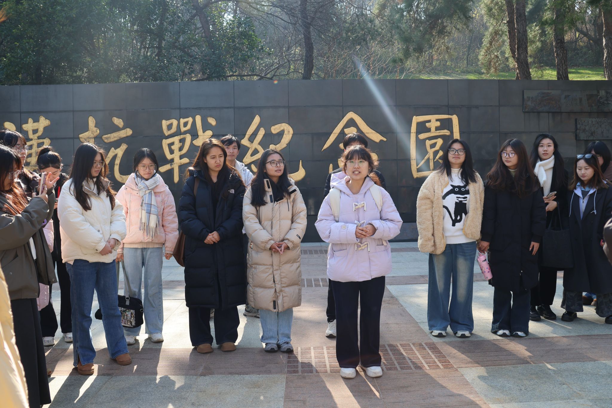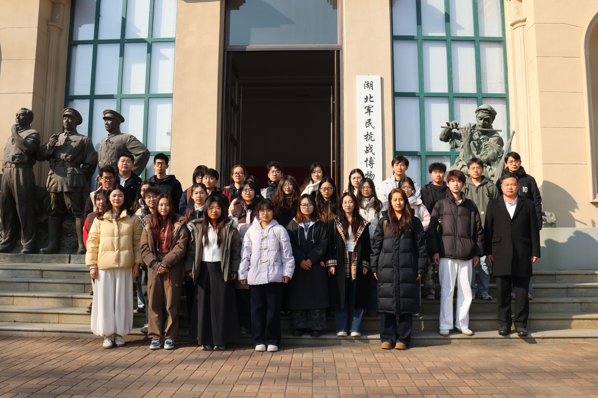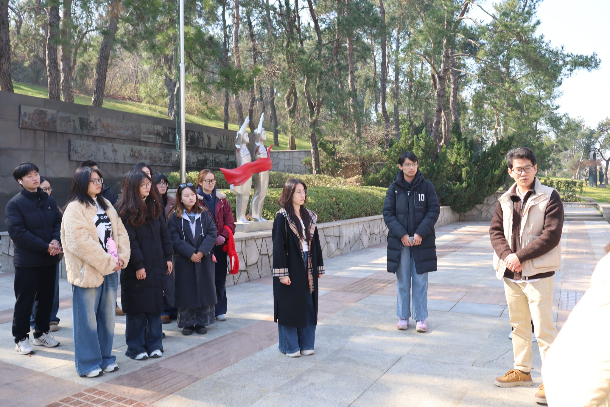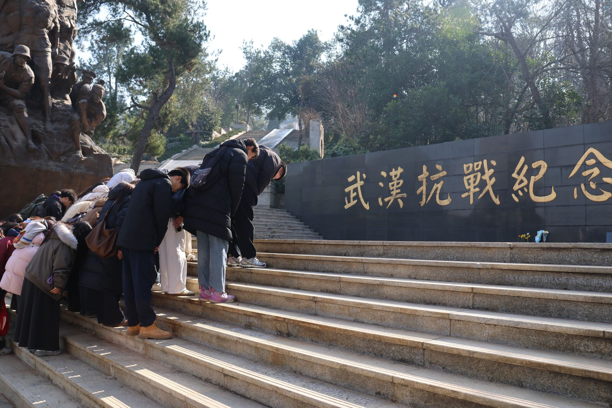 纪念馆馆长系统讲述了武汉抗战的光辉历程与精神内涵,结合入党誓词的历史演变、革命文物与将领事迹,生动阐释了中国共产党人矢志不渝的初心使命。在革命烈士安葬区,全体师生肃立鞠躬,深切缅怀为民族解放献出生命的英烈,在沉浸式学习中接受精神洗礼,进一步夯实理想信念根基。