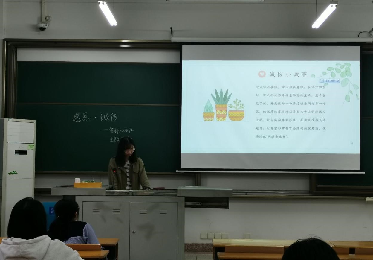 5月21日上午,公司管理科学与工程类2001班和2002班联合开展了以“立做诚信之人,心怀感恩之心”为主题诚信感恩教育班会。管科2002班长鲜智鹏以一则幽默而深刻的短片切入正题,视频中出现的因作弊而忏悔的员工和随时间流逝而老去的父母,引发了同学们对于“诚信”和“感恩”的深刻思考。鲜智鹏表示:不信不立,不诚不行。我们强调“诚信”与“感恩”不仅仅是为了遵守法规、合乎伦理,更是为了培养老员工高尚正直的理想信念和价值取向,时刻以诚信感恩之心待人处事,铭记信以立志,信以守身,信以处世,信以待人。