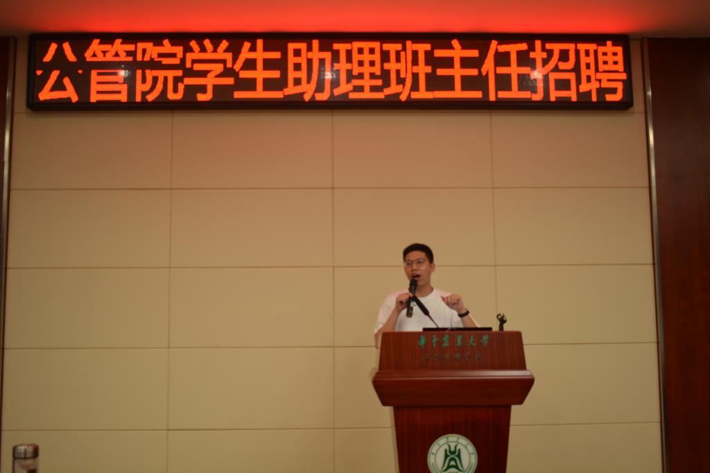 来自工程管理1902班的候选人王瑞祥回答了评委们关于时间安排、打造什么样的班集体、如何向新生介绍专业等问题。招聘结束后,评委与候选人们合影留念。