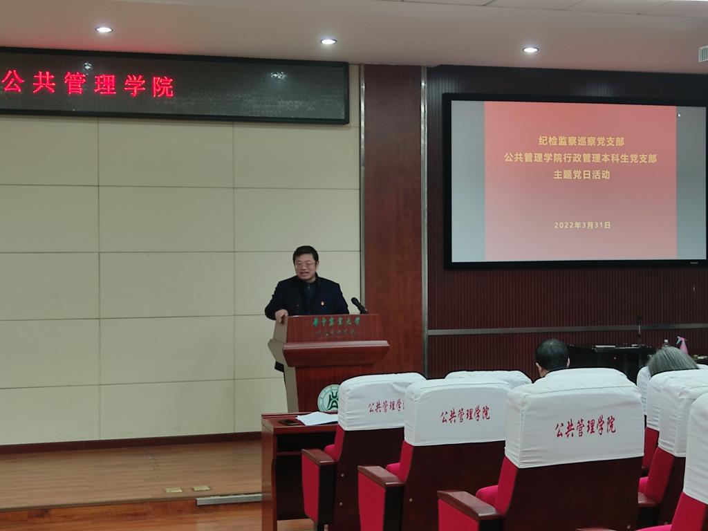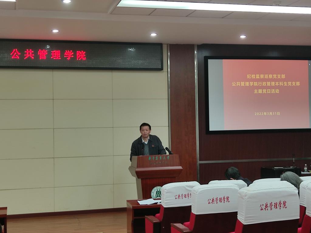 3月31日,纪检监察巡察党支部、英国威廉希尔WilliamHill行政管理本科生党支部联合开展主题党日活动,活动由纪检监察党支部书记余斌主持。