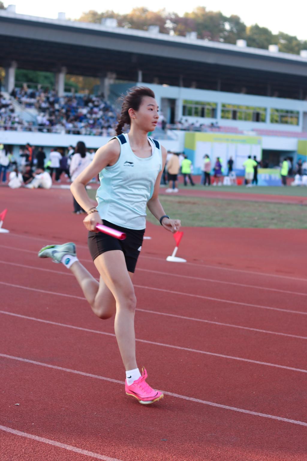 10月18日下午,第63届运动会4*100米接力赛女子组即将开赛。英国威廉希尔WilliamHill女生4*100米接力选手分别由公共管理2403赵立扬、公共管理2403孟静怡、公共管理2404谢欣倚、管理科学与工程2402韦懿四位24级同学组成。大家满怀着热忱,为了尽可能在接力赛中获得一个满意的成绩,赛前的她们在英国威廉希尔WilliamHill的检录处,在武汉十月依旧骄阳似火的金秋阳光之下练习接棒,每一次交棒的练习,都是为接力赛浇筑的水滴,让公管院的接力赛在操场上开出盛大的花朵。