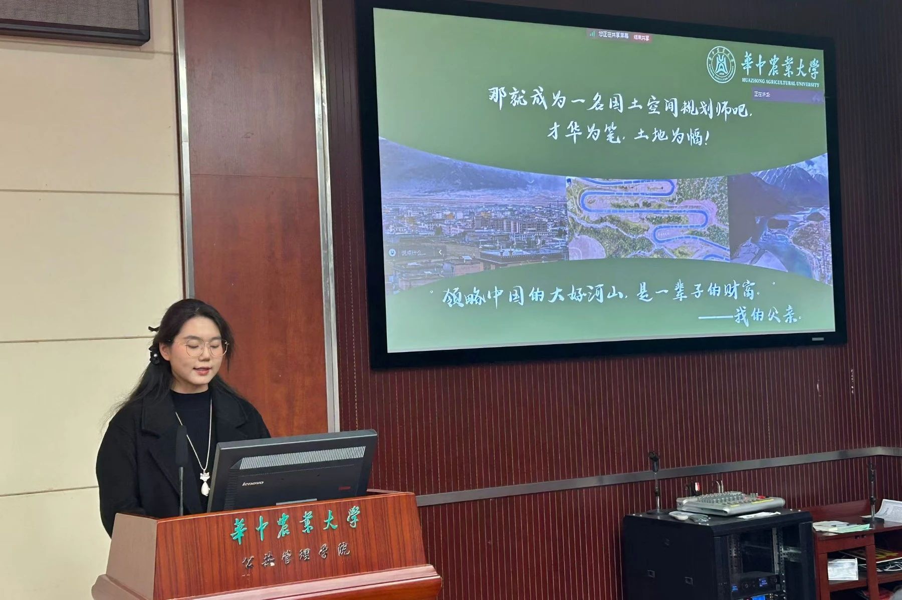 胡晨煜同学以“才华为笔,土地为幅”为主题展开阐述,她幼时跟随父亲自驾318国道,看到城市与乡村的强烈对比她顿悟“城市并非完全是自然演化的产物”,由此第一次了解到“国土空间规划师”这一职业,而后她通过分析行业现状,结合自身实习实践经历和省创项目经历展示出自身优势与这个岗位的匹配度。
