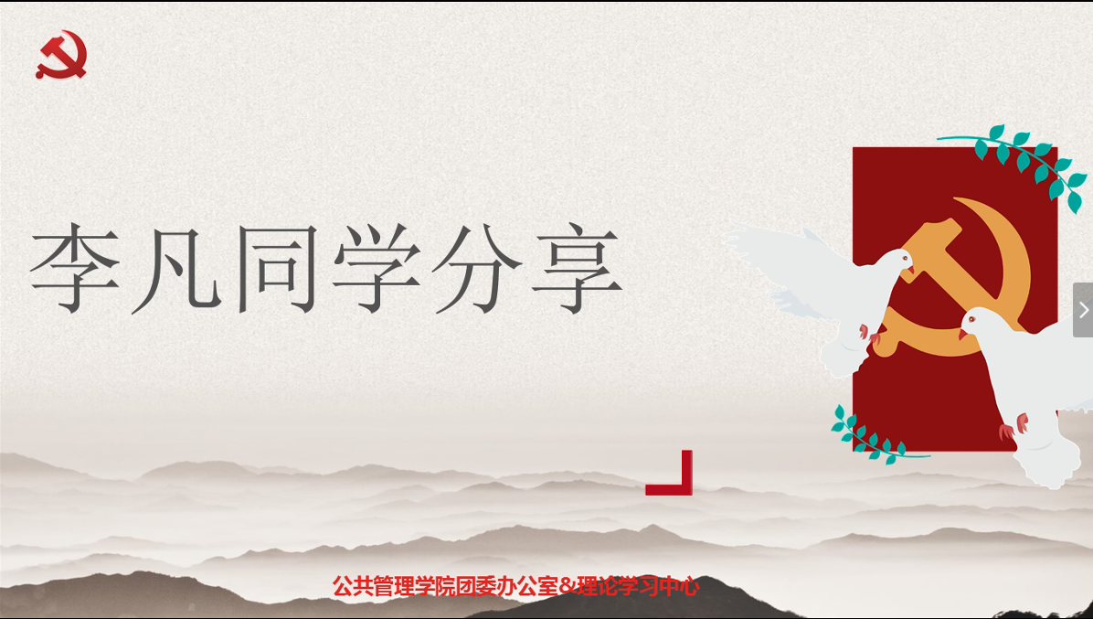 在这次结业仪式中,公管1902班的李凡同学和行管1701班的雷子扬同学就自己在研习社的学习经历进行了分享。李凡同学讲到:“我们未来可能会遇到岔道口 大道也可能被堵塞,不得不迈入一条荆棘横生的小路,但没关系 我们应该利用好这个窗口期,不管是在这半年的学习经历中,还是今后的学习里,都应该俯下身子,去学习更多、去尝试更多、去创造更多。”他鼓励研习社成员们在未来的学习中,要以“不畏浮云遮望眼”和“绝知此事要躬行”的勇气与决心去尝试和创造,用知识充实自己。今后的道路或许不是一帆风顺的,但值得期待,在成员们“踏平坎坷成大道,斗罢艰险再出发”的不懈努力与坚定决心下,不论是三农问题还是在未来的学习和生活中遇到的问题,都一定不再是研习社成员们前进的绊脚石。雷子扬同学也讲到:“目前,‘做好三农工作,打牢农业基础’仍是工作的重中之重,公司也响应号召,发出就地帮扶的倡议。我们虽然不能集体实践,但能够自主的投身到家乡的农业生产中,在给心灵放假的同时,也能了解农民的生活和农业的生产状况”。由此可见,在三农研习社的学习经历中,成员们不仅学习了三农的理论知识,更确立了“亲身下河知深浅,亲口尝梨知酸甜”的态度,懂得了只有自己亲身经历,才能真正了解我国的农业发展状况,才能对三农理论有更深刻的理解。