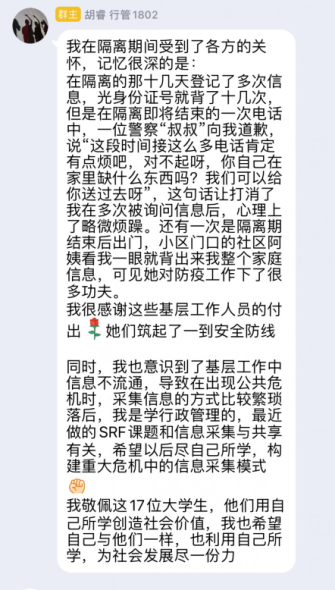 其中,理研会会员们结合自身在疫情期间的所见所闻、参与的志愿活动以及公司有关就地帮扶春耕的倡议发表自己的收获与感悟,深刻地感受到了那些冲锋在第一线的基层工作人员与医护人员的巨大努力与巨大牺牲,也更加坚定了打赢这场战”疫“的信心。