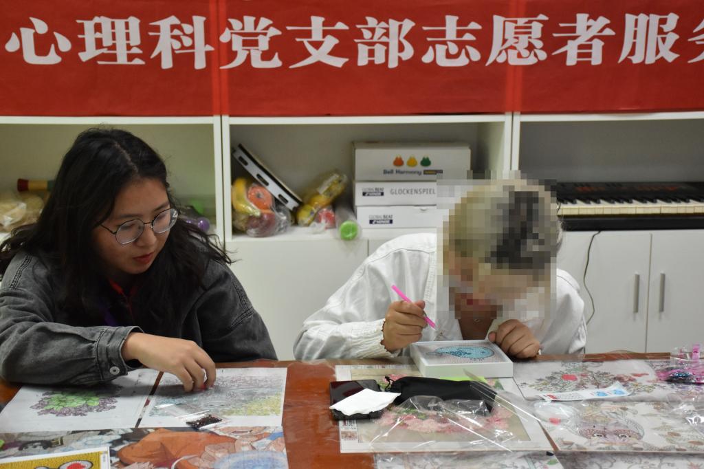 活动分为才艺展示、钻石画制作和游戏环节三个部分。 “龙卷风”合唱团首先演唱《稻香》、《康桥》等歌曲,采用阿卡贝拉无伴奏合唱形式,通过男女高低声部的灵活转换与巧妙配合,由浅入深传递出歌曲的饱满情绪,引人入胜。随后,青志工作人员卫子颖为大家详细介绍钻石画制作的具体步骤。在志愿者的耐心指导下,大家共同协作、相互配合,完成一张张漂亮的钻石画。青志负责人高江鹏表示:“希望合唱团动人的歌声可以给予患者们温暖,让他们感受到志愿者的热情关怀。我们也呼吁大家多关注老员工心理健康,希望能有更多老员工加入到关爱社会、服务大众的志愿服务队伍中来。”